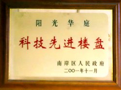 ? 2001年,陽光華庭榮獲“陽光華庭科技先進樓盤”、“陽光華庭優(yōu)秀住宅小區(qū)”、“陽光華庭優(yōu)秀規(guī)劃環(huán)境”
