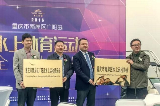 現(xiàn)場舉行授牌儀式,重慶市南岸區(qū)體育局領(lǐng)導(dǎo)李真平副局長、朱健副局長為重慶市南岸區(qū)廣陽島水上運(yùn)動(dòng)俱樂部和重慶市南岸區(qū)水上運(yùn)動(dòng)協(xié)會(huì)授牌。