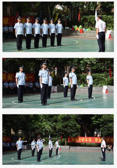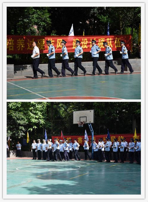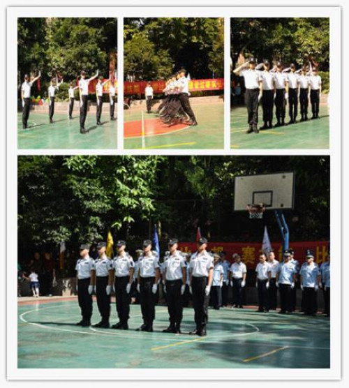 本次比賽分為兩個(gè)部分:一是在現(xiàn)場(chǎng)進(jìn)行軍事隊(duì)列動(dòng)作、交通指揮、消防出水操、火災(zāi)撲救等項(xiàng)目競(jìng)賽;二是在日常隨機(jī)抽查護(hù)衛(wèi)人員對(duì)作業(yè)流程、工作技巧、小區(qū)概況的熟悉程度,崗位記錄、儀表儀容,崗?fù)?、宿舍清潔衛(wèi)生管理等內(nèi)容。