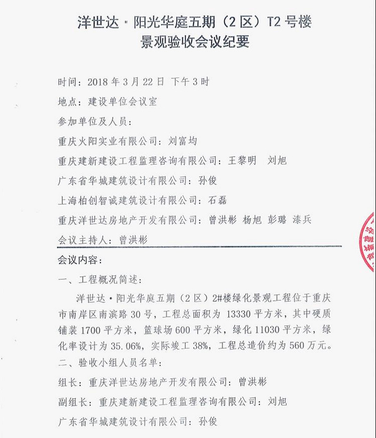 洋世達(dá).陽(yáng)光華庭五期(2區(qū))T2號(hào)樓景觀驗(yàn)收公示