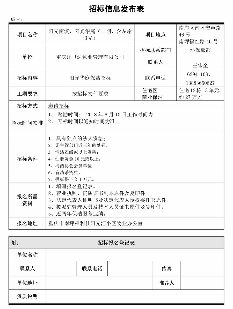 陽(yáng)光華庭、陽(yáng)光南濱保潔招標(biāo)