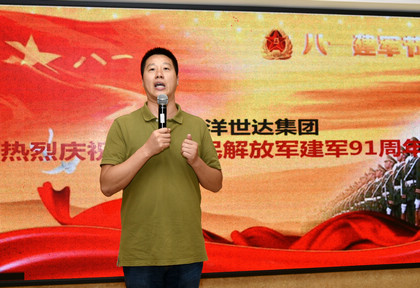 2018年8月1日,是中國人民解放軍建軍91周年紀(jì)念日,洋世達(dá)集團(tuán)公司安全保衛(wèi)處組織集團(tuán)預(yù)備役官兵和全體退伍軍人一起舉辦聚餐聯(lián)誼活動(dòng)。集團(tuán)公司楊勇董事長(zhǎng)、集團(tuán)公司張志興總裁、集團(tuán)公司張兵副總裁、集團(tuán)辦陳靜主任、集團(tuán)辦付曉副主任、集團(tuán)公司安全保衛(wèi)處趙全林處長(zhǎng)、房地產(chǎn)開發(fā)公司羅明德總工程師參加了此次聯(lián)誼活動(dòng)。