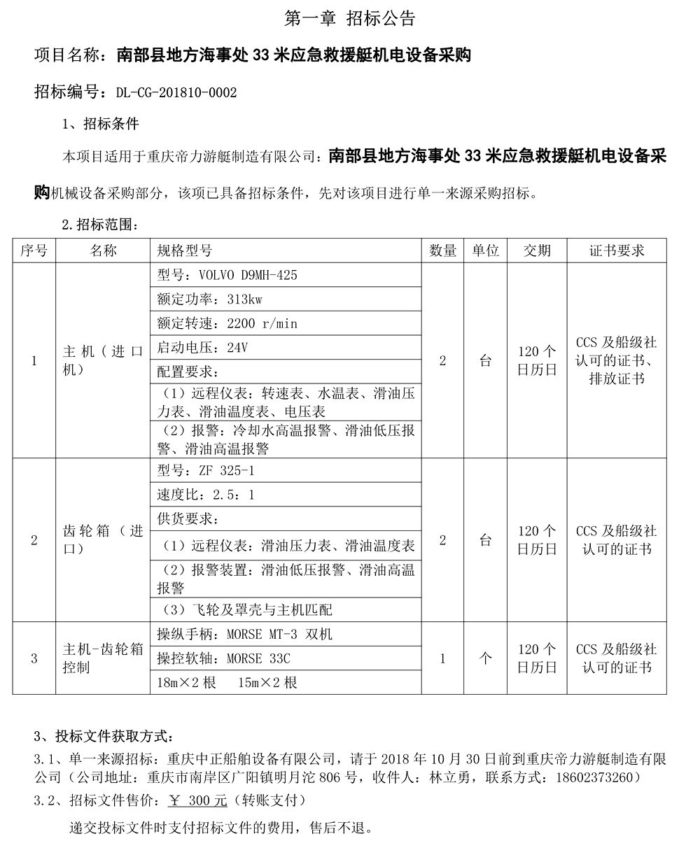 蓬安縣地方海事處33米應(yīng)急救援艇機(jī)電設(shè)備采購(gòu)