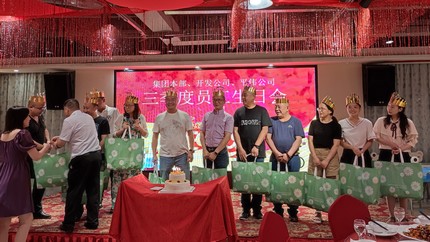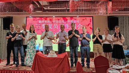 2021年7月15日下午,集團本部、房產(chǎn)公司、平偉公司的全體同仁歡聚一堂,為三季度過生日的12位同事,共同慶祝生日。