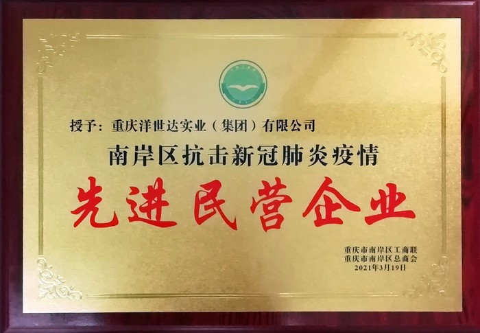 眾志成城,共克時艱,鑒于集團公司在抗擊疫情中的貢獻,重慶市房地產協(xié)會授予重慶洋世達集團抗擊新冠肺炎疫情“先進會員稱號”!