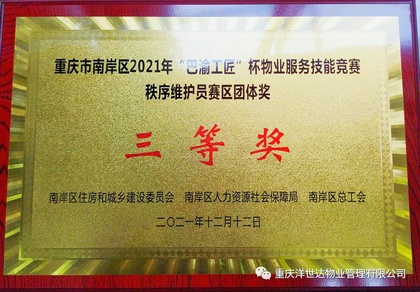 2021年12月11月、12日,南岸區(qū)住房和城鄉(xiāng)建設(shè)委員會(huì)、南岸區(qū)人力資源社會(huì)保障局、南岸區(qū)總工會(huì)組織的"巴渝工匠"杯物業(yè)服務(wù)技能大賽在南岸區(qū)重慶建筑工程職業(yè)學(xué)院隆重舉行。