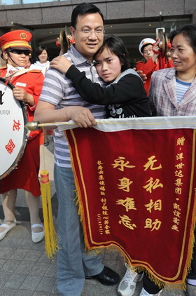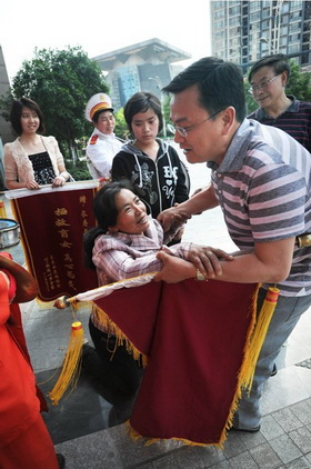4月8日,洋世達(dá)集團(tuán)公司總裁、凱誼公司總經(jīng)理?xiàng)顒賽坌木杩?0萬元,用于救助因?qū)W習(xí)用功過度導(dǎo)致失明的16歲女孩陳心萍,使她得到及時的救治并終于重獲光明。25日下午,復(fù)明后的陳心萍和母親特別請來一支鼓樂隊(duì),敲鑼打鼓來到“洋世達(dá)?圣天湖”售房部,將一面寫有“無私相助 永生難忘”的錦旗送到楊總手中。得知接錦旗的就是她們母女一直想見的恩人時,陳心萍的母親撲通跪到地上,連聲說:“你是我家的恩人呀”,楊總急忙上前扶起她,并熱情接待了母女倆。