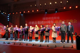慶祝大會(huì)結(jié)束后,進(jìn)行了精彩的文藝演出。演出分為夢(mèng)想起航、成就夢(mèng)想、放飛夢(mèng)想三大篇章,展現(xiàn)了洋世達(dá)集團(tuán)十年成長(zhǎng)的風(fēng)雨歷程,表達(dá)了全體洋世達(dá)人的喜悅之情,共同祝愿集團(tuán)公司10周歲生日,并在未來(lái)的日子里再創(chuàng)新的輝煌。伴隨著集體大合唱的歌聲,文藝演出完美謝幕。隨后,舉行了答謝晚宴。整個(gè)10周年慶典活動(dòng)取得圓滿成功!