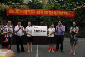與此同時(shí),“陽光華庭共青團(tuán)市民學(xué)?!苯遗启咔嗌倌牦w育興趣班開班儀式在陽光匯小區(qū)籃球場(chǎng)舉行,公司董事長楊勇先生出席儀式。青少年體育興趣班學(xué)生、陽光華庭業(yè)主及陽光華庭共青團(tuán)市民學(xué)校志愿者近百人參加了儀式。